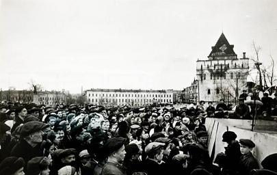 | Keywords: 9th May. Day of the German surrender. Gorky 1.jpg ru Го ьковчане слушают объявление о капитуляции Ге мании во Вто ой ми овой войне на площади инина и Пожа ского en Residents of the city of Gorky listened to the announcement of Germany's surrender in World War II in the square of Minin and Pozharsky de Die Bewohner der Stadt Gorki lauschte auf die Ankündigung der Kapitulation Deutschland im Zweiten Weltkrieg auf dem Platz von Minin und Pozharsky 1945-05-09 http //nn-stories ru/2015/05/19/war-photos/ author other versions Custom license marker 2015 08 11 PD-Russia-2008 Uploaded with UploadWizard 1945 in Nizhny Novgorod Nizhny Novgorod in the 1940s Gorky in World War II Historical images of Nizhny Novgorod Kremlin Historical images of Dmitrovskaya Tower Historical images of Minin and Pozharsky Square |