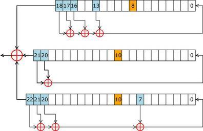 Keywords: A5-1.png Schéma du A5/1 et ses trois registres à décalage Un registre est décalé si le bit en orange correspond à la majorité des trois bits oranges On insère alors un bit correspondant à un XOR entre les bits en bleu A5/1 stream cipher Original diagram for Wikipedia created with Dia Originally uploaded on the English Wikipedia by w User Matt Crypto at 21 22 17 October 2004 Matt Crypto A5-1_GSM_cipher svg Symmetric cipher diagrams Stream Cipher |