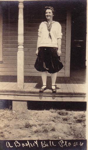 | Keywords: basketball bloomers middy porch outdoor Title: A Basketball Player Date: early 1920s Dimensions of Original: 2.40" X 4.15" Description: Young woman wearing blouse or sweater with neck scarf, bloomers, white stockings and dark, flat shoes poses on porch of building. Subjects: basketball, knickers Inscription: A Basket Ball Player Location: unknown Decade: 1920s Suggested Attribution: The Vintage Traveler Collection Title: A Basketball Player Date: early 1920s Dimensions of Original: 2.40" X 4.15" Description: Young woman wearing blouse or sweater with neck scarf, bloomers, white stockings and dark, flat shoes poses on porch of building. Subjects: basketball, knickers Inscription: A Basket Ball Player Location: unknown Decade: 1920s Suggested Attribution: The Vintage Traveler Collection |