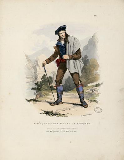 | Keywords: A Basque of the Valley of Baigorry - Fonds Ancely - B315556101 A HARDING 016.jpg The work will be published in six parts each containing five plates Price of each part twelve shillings Ancely René 1876 - 1966 Possesseur eng public domain domaine public B315556101_A_HARDING_016 jpg image/jpeg 1 f de pl lithogr en coul ; 31 cm Johnson J Illustrateur Hullmandel Charles Joseph 1789-1850 Lithographe Carpenter James 17 -18 ; libraire-relieur Editeur http //numerique bibliotheque toulouse fr/collect/general/index/assoc//ark /74899/B315556101_A_HARDING_016 dir/B315556101_A_HARDING_016 jpg Bibliothèque municipale de Toulouse A-HARDING 1 Creator James Duffield Harding http //catalogues toulouse fr/web2/tramp2 exe/do_keyword_search/log_in setting_key BMT1 servers 1home query p000923 vignette http //numerique bibliotheque toulouse fr/collect/general/index/assoc//ark /74899/B315556101_A_HARDING_016 dir/B315556101_A_HARDING_016_thumb jpeg between 1830 1832 A Basque of the Valley of Baigorry B315556101_A_HARDING_016 lithography - print - colors - color lithograph History of clothing Standing people Belts in art Saint-Étienne-de-Baïgorry Berets Historical images of the Basque Country French national costumes Valleys in art Batons in art Shoes in art Mountains in art National costumes in art Men in art Jackets James Duffield Harding Clothing in art |