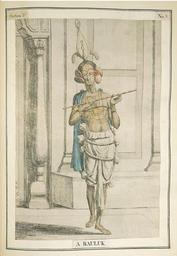 | Keywords: A Bauluk..JPG en Colored etching of barefoot Bengali dancing boy with painted face dressed as Krishna Inscription below figure reads a Bauluk Boy ™s costume includes bird headdress blue cape necklace and exotic ear decorations He holds a wand Representative image of a dancer at feast of Jhulan Yatra From Solvyns ™s Collection of two hundred and fifty coloured etchings sec 3 pl 5 Courtesy of the National Library of Medicine Images from the History of Medicine IHM http //ihm nlm nih gov/images/A109323 Also showcased in the book Hidden Treasure New York NY Blast Books 2012 p 72 HMD call number WZ 260 S692c 1799 Solvyns Balt Balthazar 1760-1824 Custom license marker 2013 08 23 PD-USGov Uploaded with UploadWizard Dance in drawings of India Frans Balthazar Solvyns |