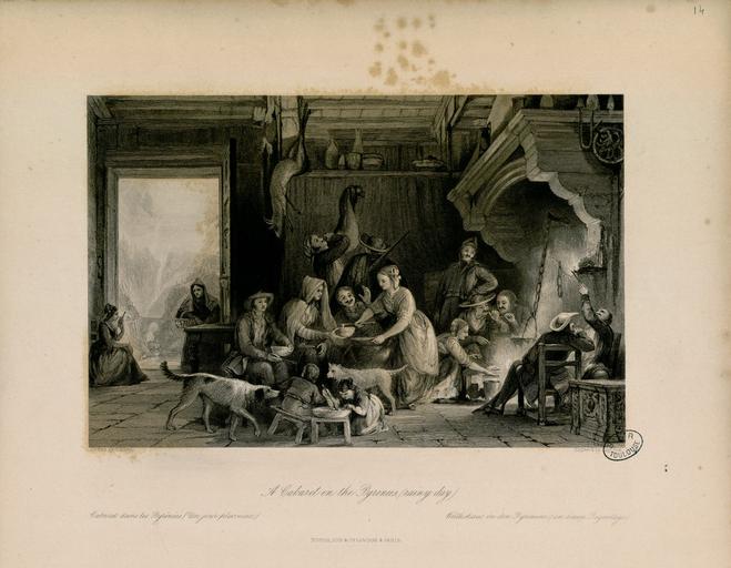 Keywords: A Cabaret in the Pyrenees (rainy day) = Cabaret dans les Pyrénées (Un jour pluvieux) = Wirthshaus in den Pyreneen (an einem regentage) - Fonds Ancely - B315556101 A ALLOM 1 014.jpg Extrait des trois volumes de La France au XIXe siècle de Thomas Allom qui contient 19 planches concernant les Pyrénées pl 45 49 55 62 68 75 78 80 81 83 Tome II et 5 7 16 37 42 45 65 83 85 Tome III Dans chaque tome le faux titre est gravé sur acier et rédigé en anglais Les planches pyrénéennes ont souvent été réunies en albums sans texte Cet exemplaire réunit 22 gravures sur acier en noir et blanc concernant les Pyrénées et Toulouse - Planches séparées Gravures exécutées par A Willmore C T Dixon E Radclyffe J Kernot W Floyd R Wallis S Fischer J C Bently H Adlard Augs Fox J Templeton S Bradshaw J Tingle T Turnbull J Carter d'après les dessins de T Allom Ancely René 1876 - 1966 Possesseur eng fre ger public domain domaine public B315556101_A_ALLOM_1_014 jpg image/jpeg 1 f de pl gr en n et b ; 27 cm Delille Charles-Jean Collaborateur Fox A Graveur http //numerique bibliotheque toulouse fr/collect/general/index/assoc//ark /74899/B315556101_A_ALLOM_1_014 dir/B315556101_A_ALLOM_1_014 jpg Bibliothèque municipale de Toulouse A-ALLOM 1-14 Creator Thomas Allom http //catalogues toulouse fr/web2/tramp2 exe/do_keyword_search/log_in setting_key BMT1 servers 1home query p000155 City of Auch Pyrenees La ville d'Auch Pyrénées Die Stadt Auch Pyreneens Château and bridge of Pau Château et pont de Pau Schlosz sic und brücke zu Pau Castle of Pau the birth-place of Henri Quatre Château de Pau lieu de naissance de Henri IV Schloss Pau geburtsort Heinrichs IV Pic du Midi d'Ossau Der Pic du Midi d'Ossau Eaux-Bonnes in the Pyrenees Eaux-Bonnes dans les Pyrénées Eaux-bonnes in den Pyreneen The Col de Tortes - Hunting the Izard Le col de Tortes - Chasse de l'Izard Der Col de Tortes - Die jagd des Izard Val d'Azun High Pyrenees Val d'Azun Hautes-Pyrénées Das Thal Azun Pyreneen Cauterets in the Pyrenees Cauterets dans les Pyrénées Cauterets in den Pyreneen Pont d'Espagne High Pyrenees Pont d'Espagne Hautes-Pyrénées Spanische Brücke Hohe Pyreneen Lac de Gaube Pyrennees Lac de Gaube Pyrénées Der see zu Gaube in den Pyreneen Church of the Knights Templars at Luz Eglise des Templiers à Luz Kirche der Malteser zu Luz Double bridge of Scia Valley of the Gave de Gavarnie Double pont de Scia Vallée du gave de Gavarnie Doppel brücke bei Scia Gave-Thal von Gavarnie The Circle of Gavarnie Pyrenees Cercle ou creux de Gavarnie Pyrénées Kries oder Kessel von Gavarnie Pyreneen Saint Beat upper Garonne Saint-Béat Haute-Garonne St Beat Ober-Garonne Bagnères de Luchon Pyrénées Bagnères de Luchon Pyreneen Castle and Valley d'Oo - Pyrenees Château et Vallée d'Oo-Pyrénées Schloss und Thal von Pyreneen Lake d'Oo - High Pyrenees Lac d'Oo Hautes-Pyrénées Der See d'Oo Obere Pyreneen The Bridge of Toulouse Pont de Toulouse Die Brücke zu Toulouse Church of Saint Sernin Toulouse Eglise de Saint-Sernin à Toulouse Die Kirche des Heil Sernin in Toulouse Church of St Taur Toulouse Eglise de Saint-Taur Toulouse St Taur Kirche Toulouse The Capitol of Toulouse Capitole de Toulouse Capitol zu Toulouse vignette http //numerique bibliotheque toulouse fr/collect/general/index/assoc//ark /74899/B315556101_A_ALLOM_1_014 dir/B315556101_A_ALLOM_1_014_thumb jpeg by 1840 A Cabaret in the Pyrenees rainy day Cabaret dans les Pyrénées Un jour pluvieux Wirthshaus in den Pyreneen an einem regentag B315556101_A_ALLOM_1_014 print - steel engraving Women in art Dishes Canteens Chairs in art Hunters Fireplaces in France Fireplaces in art History of Pyrénées Game hunting Traditional costumes of Midi-Pyrénées Thomas Allom Fire in art Stools Men in art Rooms Guest houses in France People with baskets in art |