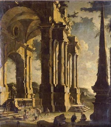 | View Original: | A_capriccio_of_classical_ruins_with_figures,_oil_on_canvas_painting_by_Leonardo_Coccorante.jpg (421x480) | |||