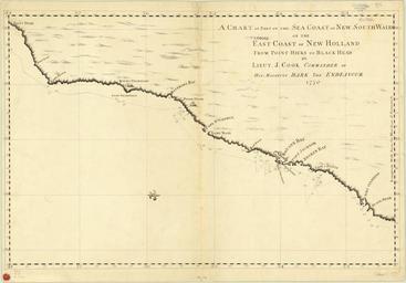 Keywords: A Chart of Part of the Sea Coast of New South Wales on the East Coast of New Holland from Point Hicks to Black Head WDL6772.png Artwork ru Кук Джеймс 1728-1779 fr Cook James 1728-1779 en Cook James 1728-1779 zh 库克 Cook 詹姆斯 James 1728-1779 pt Cook James 1728-1779 ar كوك جيمس 1728-1779 es Cook James 1728-1779 ru Ка та части мо ского побе ежья ового Южного Уэльса на Восточном побе ежье овой Голландии от Пойнт Хикс до Блэк Хед fr Une carte d'une partie du littoral de la Nouvelle-Galles-du-Sud sur la côte est de la Nouvelle-Hollande depuis Point Hicks jusque Black Head en A Chart of Part of the Sea Coast of New South Wales on the East Coast of New Holland from Point Hicks to Black Head zh 新荷兰 海岸从希克斯点到黑头的新南威尔士部分海岸 图 pt Uma Carta Náutica de Parte da Costa Marítima de Nova Gales do Sul na Costa Leste da Nova Holanda de Point Hicks a Black Head ar خريطة جزء من الساحل البحري لولاية نيو ساوث ويلز على الساحل الشرقي لهولندا الجديدة من هايكس بوينت إلى بلاك هيد ru Эта ка та является одной из четы ех укописных ка т составленных в ходе пе вого длительного исследовательского путешествия капитана Джеймса Кука кото ый в ап еле 1770 г впе вые нанес на ка ту четкое оче тание восточного побе ежья Авст алии Пе ед экспедицией о ганизованной на с едства Ко олевского научного общества и Б итанского ко олевского флота было поставлено несколько задач Кук должен был вести наблюдение и описывать п охождение Вене ы наносить на ка ту бе еговые линии посещаемых экспедицией мест в южной части Тихого океана и вести под обные записи о астительном и животном ми е этих мест а также о населяющих эти места людях О ганизато ы экспедиции также надеялись что Кук обна ужит мате ик известный в то в емя под названием <em>terra incognita australis</em> и Б итания сможет заявить на него свои п ава Ко абль Кука не подплывал близко к бе егу за исключением нескольких мест таким об азом под обность сведений изоб аженных на ка те изменялась в зависимости от удаленности ко абля от бе ега <br>Отк ытия и исследования fr Cette carte est l'une des quatre cartes manuscrites provenant du premier grand voyage d'exploration du capitaine James Cook qui en avril 1770 réalisa la première délimitation claire de la côte est de l'Australie Appuyée par la Royal Society et la Royal Navy l'expédition avait plusieurs objectifs Cook devait observer et décrire le transit de Vénus cartographier les lignes côtières des lieux visités dans le Pacifique sud et archiver des informations concernant les peuples la flore et la faune rencontrés Les promoteurs de l'expédition espéraient également que Cook trouve et revendique pour la Grande-Bretagne les terres alors connues sous le nom de <em>terra incognita australis</em> Cook ne navigua pas à proximité des côtes sauf à certains endroits la quantité de détails présentée sur la carte varie donc en fonction de la distance de son navire par rapport à la côte <br>Découverte et exploration en This map is one of four manuscript charts from the first great voyage of exploration by Captain James Cook which in April 1770 made the first clear delineation of the east coast of Australia Sponsored by the Royal Society and the Royal Navy the expedition had several objectives Cook was to observe and describe the transit of Venus chart the coastlines of places he visited in the South Pacific and record details of the peoples flora and fauna he saw The expedition sponsors also hoped Cook would find and claim for Britain the land then known as <em>terra incognita australis</em> Cook did not sail close to shore except in a few places so the amount of detail shown in the map varied with his ship s distance from the coast <br>Discovery and exploration zh 这幅 图是詹姆斯·库克 James Cook 船长第 次伟大的探险航行的四幅手绘 图之 ,该 图于 1770 年 4 完成,首次清楚 绘制了澳大利亚 海岸 探险由英国皇家学会和皇家海军资助,共 以下几个目的:库克船长希 观察和记述金星凌日,绘制南太平洋 到之处的海岸线,并详细记录 见的人文和动植物 探险资助方希 库克船长能够找到当时被称为<em> 知的南方陆 </em>的大陆并替英国宣称主 除了少数几个 方外,库克船长没 驶近岸边, 以 图上显示的细节多寡随船只与岸边的 离 变 <br>发现与探索 pt Este mapa é uma das quatro cartas manuscritas da primeira viagem de exploração realizada pelo grande capitão James Cook que em abril de 1770 fez a primeira delineação clara da costa leste da Austrália Patrocinada pela Sociedade Real e pela Marinha Real a expedição tinha vários objetivos Cook deveria observar e descrever o trânsito de Vênus elaborar a carta náutica das costas de lugares que visitasse no Pacífico Sul e produzir registros detalhados dos povos da flora e da fauna vistos por ele Os patrocinadores da expedição desejavam também que Cook encontrasse e reivindicasse par
