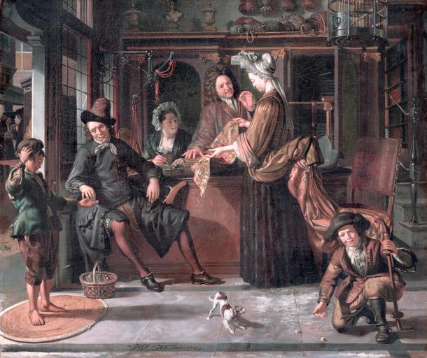 | Keywords: A draper's shop, by Matthijs Naiveu.jpg en A draper's shop oil on canvas 53 × 62 cm signed b c Ms Naiveu 1709 1709 http //www lakenhal nl/nl/collectie/s-567 Museum de Lakenhal Creator Matthijs Naiveu other versions Custom license marker 2016 06 18 PD-old-100 Matthys Naiveu 1709 Paintings in the Museum De Lakenhal Naiveu Matthijs |