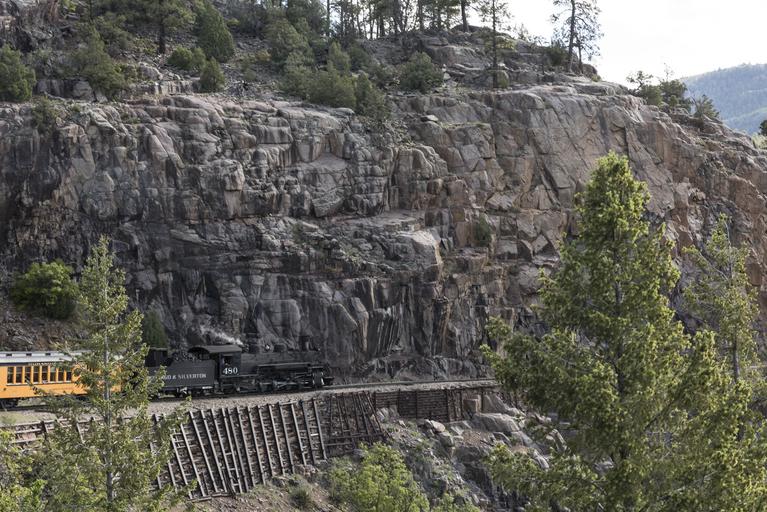 Keywords: A Durango & Silverton Narrow Gauge Railroad (D&SNG) train proceeds along the rocky "Highline" ridge high above the Animas River Valley in La Plata County, Colorado LCCN2015632667.tif 1 photograph digital tiff file color Notes The D SNG is a narrow-gauge railroad that operates 45 2 miles of track between Durango and Silverton in southwest Colorado The route was originally opened in 1882 by the Denver Rio Grande Railway to transport silver and gold ore mined from the San Juan Mountains The line has run continuously since 1881 and some rolling stock dates to then It is now strictly a tourist and heritage line hauling passengers and is one of the few places in the United States that has seen continuous use of steam locomotives In March 1981 the Denver Rio Grande Western sold the line and the D SNG was formed Trains operate from Durango just 26 miles into the mountains in winter months and the full 45 miles to Silverton during warmer months ; Purchase; Carol M Highsmith Photography Inc ; 2015; DLC/PP-2015 068 ; Forms part of Gates Frontiers Fund Colorado Collection within the Carol M Highsmith Archive ; Credit line Gates Frontiers Fund Colorado Collection within the Carol M Highsmith Archive Library of Congress Prints and Photographs Division ; Title date and keywords based on information provided by the photographer 2015 Creator Carol M Highsmith Library of Congress Catalog http //lccn loc gov/2015632667 Image download https //cdn loc gov/master/pnp/highsm/32600/32652a tif Original url http //hdl loc gov/loc pnp/highsm 32652 No known restrictions on publication LOC-image highsm 32652 PD-Highsmith Images uploaded by Fæ Gates Frontiers Fund Colorado Collection within the Carol M Highsmith Archive Durango and Silverton Narrow Gauge Railroad trains Gates Frontiers Fund Colorado Collection within the Carol M Highsmith Archive Library of Congress Prints and Photographs Division Photographs by Carol M Highsmith |