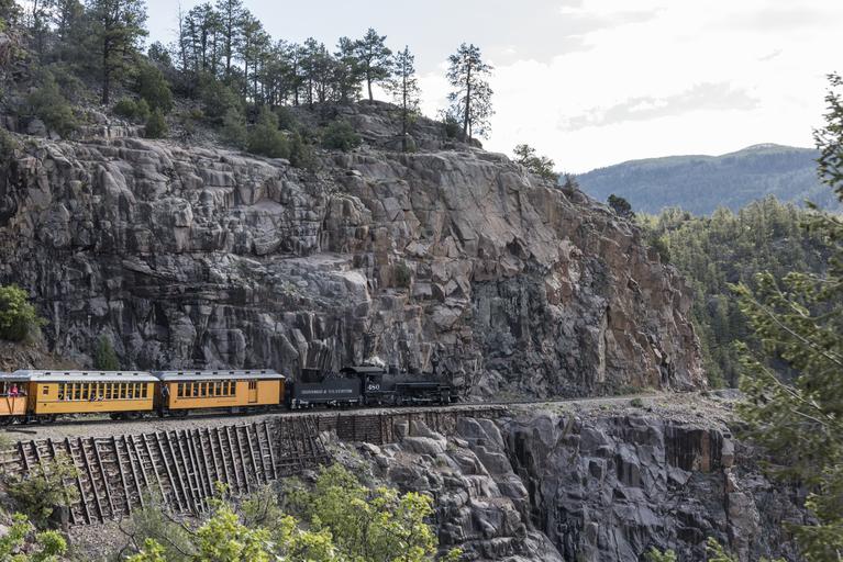 Keywords: A Durango & Silverton Narrow Gauge Railroad (D&SNG) train proceeds along the rocky "Highline" ridge high above the Animas River Valley in La Plata County, Colorado LCCN2015632668.tif 1 photograph digital tiff file color Notes The D SNG is a narrow-gauge railroad that operates 45 2 miles of track between Durango and Silverton in southwest Colorado The route was originally opened in 1882 by the Denver Rio Grande Railway to transport silver and gold ore mined from the San Juan Mountains The line has run continuously since 1881 and some rolling stock dates to then It is now strictly a tourist and heritage line hauling passengers and is one of the few places in the United States that has seen continuous use of steam locomotives In March 1981 the Denver Rio Grande Western sold the line and the D SNG was formed Trains operate from Durango just 26 miles into the mountains in winter months and the full 45 miles to Silverton during warmer months ; Purchase; Carol M Highsmith Photography Inc ; 2015; DLC/PP-2015 068 ; Forms part of Gates Frontiers Fund Colorado Collection within the Carol M Highsmith Archive ; Credit line Gates Frontiers Fund Colorado Collection within the Carol M Highsmith Archive Library of Congress Prints and Photographs Division ; Title date and keywords based on information provided by the photographer 2015 Creator Carol M Highsmith Library of Congress Catalog http //lccn loc gov/2015632668 Image download https //cdn loc gov/master/pnp/highsm/32600/32653a tif Original url http //hdl loc gov/loc pnp/highsm 32653 No known restrictions on publication LOC-image highsm 32653 PD-Highsmith Images uploaded by Fæ Gates Frontiers Fund Colorado Collection within the Carol M Highsmith Archive Durango and Silverton Narrow Gauge Railroad trains Gates Frontiers Fund Colorado Collection within the Carol M Highsmith Archive Library of Congress Prints and Photographs Division Photographs by Carol M Highsmith |