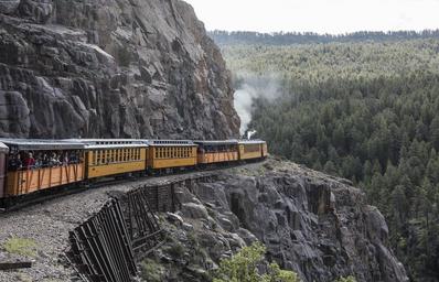 Keywords: A Durango & Silverton Narrow Gauge Railroad (D&SNG) train proceeds along the rocky "Highline" ridge high above the Animas River Valley in La Plata County, Colorado LCCN2015632669.tif 1 photograph digital tiff file color Notes The D SNG is a narrow-gauge railroad that operates 45 2 miles of track between Durango and Silverton in southwest Colorado The route was originally opened in 1882 by the Denver Rio Grande Railway to transport silver and gold ore mined from the San Juan Mountains The line has run continuously since 1881 and some rolling stock dates to then It is now strictly a tourist and heritage line hauling passengers and is one of the few places in the United States that has seen continuous use of steam locomotives In March 1981 the Denver Rio Grande Western sold the line and the D SNG was formed Trains operate from Durango just 26 miles into the mountains in winter months and the full 45 miles to Silverton during warmer months ; Purchase; Carol M Highsmith Photography Inc ; 2015; DLC/PP-2015 068 ; Forms part of Gates Frontiers Fund Colorado Collection within the Carol M Highsmith Archive ; Credit line Gates Frontiers Fund Colorado Collection within the Carol M Highsmith Archive Library of Congress Prints and Photographs Division ; Title date and keywords based on information provided by the photographer 2015 Creator Carol M Highsmith Library of Congress Catalog http //lccn loc gov/2015632669 Image download https //cdn loc gov/master/pnp/highsm/32600/32654a tif Original url http //hdl loc gov/loc pnp/highsm 32654 No known restrictions on publication LOC-image highsm 32654 37 29 5247 0 N 107 47 5457 0 W alt 2207_source exif_heading PD-Highsmith Images uploaded by Fæ Gates Frontiers Fund Colorado Collection within the Carol M Highsmith Archive Durango and Silverton Narrow Gauge Railroad trains Gates Frontiers Fund Colorado Collection within the Carol M Highsmith Archive Library of Congress Prints and Photographs Division Photographs by Carol M Highsmith |
