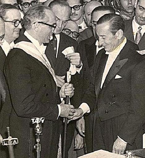 | Keywords: A. Frondizi recibe el mando.jpg es Es una foto del día que Frondizi recivio la banda presidencial y el bastón Del libro M E Alonso E C Vasquez 2005 Aique ed Historia la Argentina contemporánea 1852-1999 3ra edición ISBN 950-701-622-8 author 1958-05-01 La foto tiene más de 25 años Arturo Frondizi 1958 presidential inauguration Presidential successions of Argentina PD-AR-Photo PD-1996 | ||||
