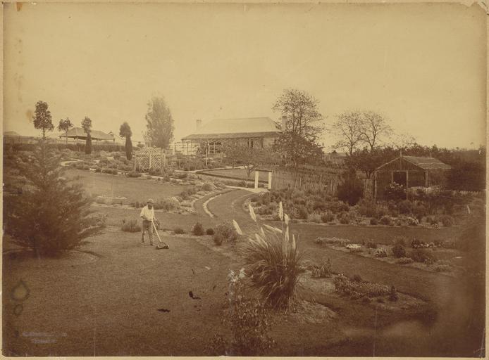 View Original:A_gardener_mowing_the_homestead_lawns_at_Pulletop_Station,_New_South_Wales,_ca._1885_/_Charles_Bayliss.jpg (1024x755)