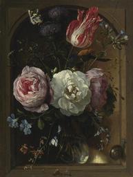 | Keywords: A glass vase of flowers including roses, a tulip, and thistles with snails, a butterfly, and a caterpillar.jpg Artwork en A glass vase of flowers including roses a tulip and thistles with snails a butterfly and a caterpillar oil on panel Size cm 26 3 20 object history exhibition history credit line place of creation PD-old-100 http //www sothebys com/content/dam/stb/lots/N09/N09161/101N09161_76V7P jpg accession number Uploaded with UploadWizard Jan Davidsz de Heem | ||||
