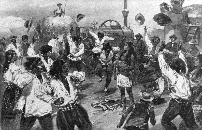 | Keywords: A gypsy cure for bear-bite - A strange scene on a Roumanian farm.jpg of a curious scene he witnessed a few days ago Threshing was going on at a farm and several families of gypsies who were travelling with performing bears were engaged to help in the work One of their children approaching too close to one of the tethered animals was bitten and brought to the place where his parents were working by his bigger companions Then arose a great outcry and the child's parents insisted on the performance of their native rites The mother stripped herself almost nude and standing in the centre of a circle formed by the members of her party accompanied them in the singing of a gypsy dirge Gradually working themselves almost to a pitch of frenzy they then began yelling and stamping like maniacs while the father of the child turned head-over-heels round the ring until he fell exhausted After twenty minutes of this the child was taken to the hospital The Illustrated London News p 535 1905-10-14 Drawn by Hermanus Willem Koekkoek based on sketches by Rook Carnegie Creator Hermanus Willem Koekkoek Creator Rook Carnegie PD-old-auto-1923 1929 1905 in Romania Romanian Roma people in art Paganism in Romania ILN 1905 Hermanus Willem Koekkoek Rook Carnegie 1905 in art |