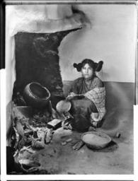 | Keywords: A Hopi maiden drying corn meal at a fireplace at Mishongnovi (Mashonguavi) or Oraibi, Arizona, 1898 (CHS-4587).jpg Second Mesa or Oraibi Arizona 1898 She wears a long dress with shawl around her shoulders Her hair is tied into flat buns on each side of her head She is crouching beside the hearth which is situated in a corner of the house A basket of corn meal sits on the dirt floor with several ears of corn ---- Call number CHS-4587 Legacy record ID chs-m16918; USC-1-1-1-13518 Photographer James George Wharton Filename CHS-4587 Coverage date 1898 Part of collection California Historical Society Collection 1860-1960 Type images Geographic subject city or populated place Mishongnovi Repository name USC Libraries Special Collections Accession number 4587 Microfiche number 1-168- Archival file chs_Volume96/CHS-4587 tiff Part of subcollection Title Insurance and Trust and C C Pierce Photography Collection 1860-1960 Repository address Doheny Memorial Library Los Angeles CA 90089-0189 Geographic subject country USA Format aacr2 3 photographs glass photonegative photoprints b w ; 22 x 17 cm 26 x 21 cm 21 x 16 cm Rights Digitally reproduced by the USC Digital Library; From the California Historical Society Collection at the University of Southern California Subject adlf tribal areas Project USC Repository email specol usc edu Identifying number unidentified no James-42 Contributing entity California Historical Society Date created 1898 Publisher of the digital version University of Southern California Libraries Format aat photographic prints; photographs Geographic subject state Arizona Subject file heading Indians -- Hopi -- General Geographic coordinates -110 491943 35 805000; -110 639717 35 876389; -110 639442 35 876389; -110 639442 35 874722; -110 639717 35 874722; -110 639717 35 876389 Format glass plate negatives Geographic subject tribal areas Hopi Reservation Access conditions Send requests to address or e-mail given Phone 213 821-2366; fax 213 740-2343 Geographic subject county Navajo Subject lcsh Indians of North America; Hopi Indians 1898 date created George Wharton James 1858 1923 http //digitallibrary usc edu/cdm/ref/collection/p15799coll65/id/16840 PD-old-70-1923 Hopi women Fireplaces in Arizona Hopi Hopi architecture ˘ Building interiors in Arizona Hopi Second Mesa Arizona Interior 19th-century women of the United States Arizona in the 1890s Black and white photographs of Arizona Images from USC Digital Library uploaded by Fæ Photographs by George Wharton James Hopi California Historical Society Collection 1860-1960 Glass plate negatives |