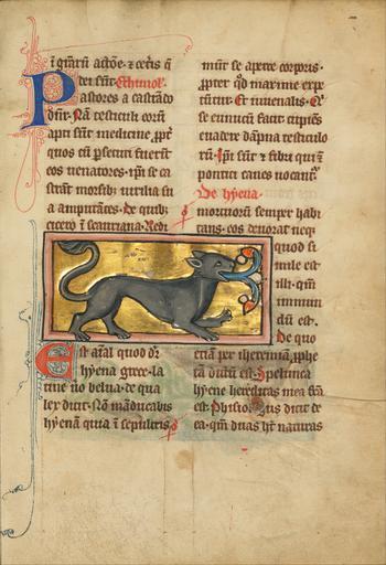 | Keywords: A Hyena - Google Art Project.jpg None 430703 Unknown /collection/the-j-paul-getty-museum/artwork/a-hyena-unknown/6828333/ Unknown illuminator /collection/the-j-paul-getty-museum/ The J Paul Getty Museum 343005 http //www getty edu/museum 3/12/2012 5 02 16 PM /collection/the-j-paul-getty-museum/artwork/a-hyena-unknown/6828333/ 1278 fourth quarter of 13th century after 1277 Hyenas Tempera colors pen and ink gold leaf and gold paint on parchment 233 6828333 True 1299 3/25/2012 12 14 03 PM lido getty edu-gm-obj5535 http //www getty edu/art/gettyguide/artObjectDetails artobj 5535 http //www getty edu/legal/copyright html Folio 1270 1300 Thérouanne France formerly Flanders Creation w164 x h233 cm fourth quarter of 13th century after 1277 False 0 68359375 Part a-hyena-unknown A Hyena a 164 Tempera colors pen and ink gold leaf and gold paint on parchment Hyenas http //www getty edu/legal/copyright html special url_id 8AHcH7iXcovkFA PD-old-100 Google Art Project works by unknown artist MS LUDWIG XV 4 Getty museum - Bird Book of Hugo Fouilloy Hyena in art |