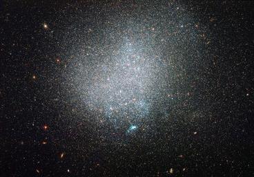 | Keywords: ddo 190 ddo190 ugc 9240 ugc9240 texture abstract black background In terms of intergalactic real estate, our Solar System has a plumb location as part of a big, spiral galaxy, the Milky Way. Numerous, less glamorous dwarf galaxies, keep the Milky Way company. Many galaxies, however, are comparatively isolated, without close neighbours. One such example is the small galaxy known as DDO 190, snapped here in a new image from the NASA/ESA Hubble Space Telescope. DDO 190 is classified as a dwarf irregular galaxy as it is relatively small and lacks clear structure. Older, reddish stars mostly populate DDO 190’s outskirts, while some younger, bluish stars gleam in DDO 190’s more crowded interior. Some pockets of ionised gas heated up by stars appear here and there, with the most noticeable one shining towards the bottom of DDO 190 in this picture. Meanwhile, a great number of distant galaxies with evident spiral, elliptical and less-defined shapes glow in the background. DDO 190 lies around nine million light-years away from our Solar System. It is considered part of the loosely associated Messier 94 group of galaxies, not far from the Local Group of galaxies that includes the Milky Way. Canadian astronomer Sidney van der Bergh was the first to record DDO 190 in 1959 as part of the DDO catalogue of dwarf galaxies. (“DDO” stands for the David Dunlap Observatory, now managed by the Royal Astronomical Society of Canada, where the catalogue was created). Although within the Messier 94 group, DDO 190 is on its own. The galaxy’s nearest dwarf galaxy neighbour, DDO 187, is thought to be no closer than three million light-years away. In contrast, many of the Milky Way’s companion galaxies, such as the Large and Small Magellanic Clouds, reside within a fifth or so of that distance, and even the giant spiral of the Andromeda Galaxy is closer to the Milky Way than DDO 190 is to its nearest neighbour. Hubble’s Advanced Camera for Surveys captured this image in visible and infrared light. The field of view is around 3.3 by 3.3 arcminutes A version of this image was entered into the Hubble’s Hidden Treasures Image Processing Competition by contestant Claude Cornen. Hidden Treasures is an initiative to invite astronomy enthusiasts to search the Hubble archive for stunning images that have never been seen by the general public. The competition has now closed and the results will be published soon. In terms of intergalactic real estate, our Solar System has a plumb location as part of a big, spiral galaxy, the Milky Way. Numerous, less glamorous dwarf galaxies, keep the Milky Way company. Many galaxies, however, are comparatively isolated, without close neighbours. One such example is the small galaxy known as DDO 190, snapped here in a new image from the NASA/ESA Hubble Space Telescope. DDO 190 is classified as a dwarf irregular galaxy as it is relatively small and lacks clear structure. Older, reddish stars mostly populate DDO 190’s outskirts, while some younger, bluish stars gleam in DDO 190’s more crowded interior. Some pockets of ionised gas heated up by stars appear here and there, with the most noticeable one shining towards the bottom of DDO 190 in this picture. Meanwhile, a great number of distant galaxies with evident spiral, elliptical and less-defined shapes glow in the background. DDO 190 lies around nine million light-years away from our Solar System. It is considered part of the loosely associated Messier 94 group of galaxies, not far from the Local Group of galaxies that includes the Milky Way. Canadian astronomer Sidney van der Bergh was the first to record DDO 190 in 1959 as part of the DDO catalogue of dwarf galaxies. (“DDO” stands for the David Dunlap Observatory, now managed by the Royal Astronomical Society of Canada, where the catalogue was created). Although within the Messier 94 group, DDO 190 is on its own. The galaxy’s nearest dwarf galaxy neighbour, DDO 187, is thought to be no closer than three million light-years away. In contrast, many of the Milky Way’s companion galaxies, such as the Large and Small Magellanic Clouds, reside within a fifth or so of that distance, and even the giant spiral of the Andromeda Galaxy is closer to the Milky Way than DDO 190 is to its nearest neighbour. Hubble’s Advanced Camera for Surveys captured this image in visible and infrared light. The field of view is around 3.3 by 3.3 arcminutes A version of this image was entered into the Hubble’s Hidden Treasures Image Processing Competition by contestant Claude Cornen. Hidden Treasures is an initiative to invite astronomy enthusiasts to search the Hubble archive for stunning images that have never been seen by the general public. The competition has now closed and the results will be published soon. |