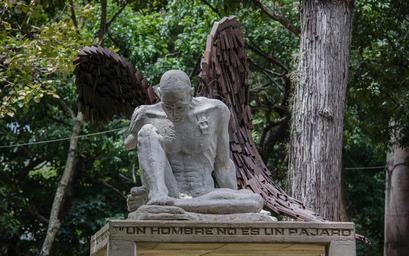 Keywords: A man is not a bird.jpg es Icaro in the park Los Caobos Caracas - Venezuela Escultura que se titula Ícaro que en el pedestal tiene grabado Un hombre no es un pájaro y debe soportar la ruindad de estar unido a la tierra como los ángeles al cielo 2013-07-24 13 11 28 own Noelsanchezm other versions cc-zero Uploaded with UploadWizard Sculptures QualityImage