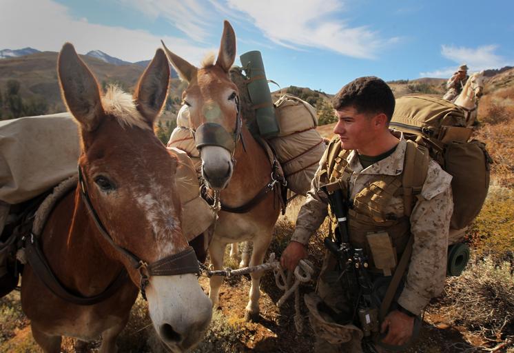 | Keywords: A Marine and His Horse (8122275474).jpg Lance Cpl Tyler Langford anti-tank missileman 3rd Battalion 3rd Marine Regiment leads his pack mule during a hike at Marine Corps Mountain Warfare Training Center Bridgeport Calif Oct 13 2012 Langford used skills he learned in the Animal Packers Course taught four times a year at MCMWTC The 16-day course teaches Marines how to use animals in the region they find themselves in as a logistical tool to transport weapons ammunition food supplies or wounded Marines through terrain that tactical vehicles cannot reach U S Marine Corps photo by Lance Cpl Ali Azimi To read more about animal packers visit http //www dvidshub net/news/96472/into-mountains UIcKP2m3hYg ixzz2A9x9y8we www dvidshub net/news/96472/into-mountains UIcKP2m3hYg 2 https //www flickr com/photos/marine_corps/8122275474/ A Marine and His Horse 2012-10-13 14 34 https //www flickr com/people/40927340 N03 Marines from Arlington VA United States PD-USGov United States Marine Corps Official Page https //flickr com/photos/40927340 N03/8122275474 2016-09-03 22 51 04 United States Government Work Uncategorized 2016 November 12 |