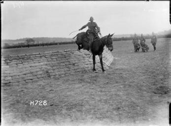 Keywords: blackandwhite monochrome outdoor animal black and white A remarkable mule jumper clearing the same jump as horses in the jumping contest at the New Zealand Divisional sports held at Authie, France during World War I. Photograph taken 23 July 1918 by Henry Armytage Sanders. Inscriptions: Inscribed - Photographer's title on negative -bottom left: H728. Quantity: 1 b&w original negative(s). Physical Description: Dry plate glass negative 4.75 x 6.5 inches A mule jumper at a New Zealand Divisional sports competition, Authie. Royal New Zealand Returned and Services' Association :New Zealand official negatives, World War 1914-1918. Ref: 1/2-013332-G. Alexander Turnbull Library, Wellington, New Zealand. natlib.govt.nz/records/22344264 A remarkable mule jumper clearing the same jump as horses in the jumping contest at the New Zealand Divisional sports held at Authie, France during World War I. Photograph taken 23 July 1918 by Henry Armytage Sanders. Inscriptions: Inscribed - Photographer's title on negative -bottom left: H728. Quantity: 1 b&w original negative(s). Physical Description: Dry plate glass negative 4.75 x 6.5 inches A mule jumper at a New Zealand Divisional sports competition, Authie. Royal New Zealand Returned and Services' Association :New Zealand official negatives, World War 1914-1918. Ref: 1/2-013332-G. Alexander Turnbull Library, Wellington, New Zealand. natlib.govt.nz/records/22344264 |