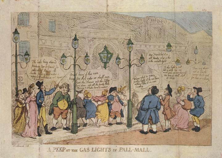 | Keywords: A Peep at the Gas Lights in Pall Mall.png Caricature by G M Woodward The Rise of the GAs Industry in Britain by Chandler and Lacey 1808 George M Woodward retouched version Image A Peep at the Gas Lights in Pall Mall Rowlandson 1809 jpg For further explanation see Image A Peep at the Gas Lights in Pall Mall Rowlandson 1809 jpg PD-old-100 DEFAULTSORT 1809; A peep at the gas lights 19th-century caricatures 1808 cartoons Lanterns in art Street lights in art George Moutard Woodward | ||||
