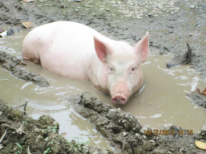 Keywords: A pig in Ben Tre village..JPG en A pig surprised by tourists in Ben Tre village own Rudolph A Furtado Tuesday 10-12-2013 Ben Tre Province Cc-zero