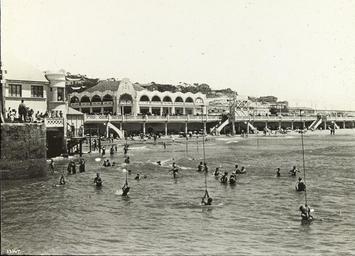 | Keywords: A seaside resort, fun pier with pavillions.jpg View looking from the water towards the pier and buildings with balconies and arch colonnades In the water are swimmers holding on to an overhead cable with crowds of people on the pier and a view of holiday homes in the distance circa 1920 “ ca 1930 1 lantern slide glass Size cm 8 1 8 1 Institution State Library of Victoria object history exhibition history credit line Photographer unknown Undated but circa 1920 “1930 Title taken from provenance file accession number H92 339/35 place of creation SLVIC-digitalimage 95316 H92 339/35 This work is out of copyright No copyright restrictions apply <br>http //www slv vic gov au/about-us/plans-policies/copyright-library-items/do-i-need-librarys-permission-well-copyright-owners- Copying digitised material from the Library's collections You may find digital copies of items from the Library's collections such as photographs or recorded interviews on the Library's website and online catalogue Where this material is out of copyright it may be freely used provided the Library and the creator are acknowledged; however the Library does not endorse any inappropriate or derogatory use Custom license marker 2014 08 08 PD-Australia PD-US Uploaded with UploadWizard Lantern slides of South Africa South Africa in the 1920s Beaches of South Africa Zip lines Unidentified buildings in South Africa |