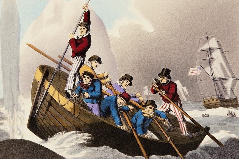 | Keywords: A Ship's Boat Attacking a Whale - J.H. Clark.png A Ship's Boat Attacking a Whale Engraving hand colored 18 x 22 8 cm Corel Professional Photos CD-ROM 1813 John Heaviside Clark PD-old-100 Whaling in art Printmaking Engravings by John Heaviside Clark 1813 engravings Whaleboats rowed |