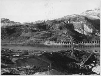 | Keywords: A three-view panorama of the development from top of east abutment - NARA - 294204.tif Scope and content Photograph from Volume Two of a series of photo albums documenting the construction of the Grand Coulee Dam and related work on the Columbia Basin Project General notes This image is part of a panoramic view which includes items 933 934 and 935 The original image measures approximately 27 inches in width 294204 Local identifier Department of the Interior Bureau of Reclamation Engineering and Research Center 05/18/1981 - 03/04/1988 NARA's Rocky Mountain Region Denver NRGA Building 48 Denver Federal Center West 6th Avenue and Kipling Street Denver CO 80225-0307 1936-01-05 Record group Record Group 115 Records of the Bureau of Reclamation 1889 - 2008 Record group ARC 444 Photograph albums compiled 1903 - 1972 Series ARC 293611 File unit File unit ARC Variant control numbers NAIL Control Number NRG-115-CONSTPHO85006-COLBASIN2933 yes Other versions <gallery> File A three-view panorama of the development from top of east abutment - NARA - 294204 jpg jpg </gallery> NARA-cooperation PD-USGov Construction of the Grand Coulee Dam NARA TIF images with categorized JPGs |