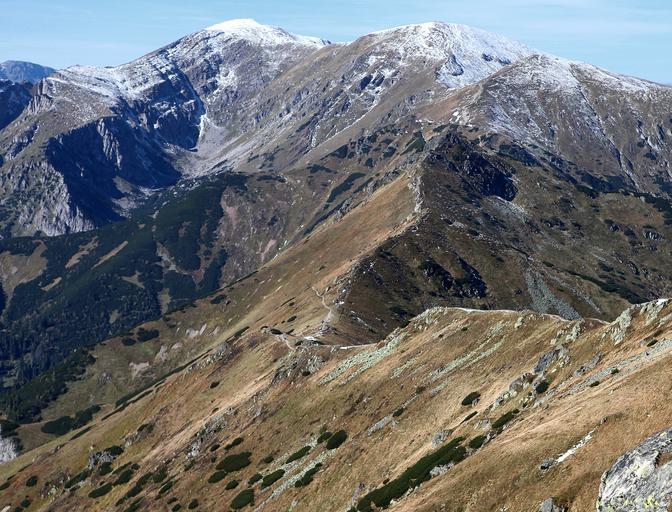 Keywords: a view of the mountains mountains tatry polish tatras nature autumn rocks ridge direction czerwone wierchy kopa kondracka the snow-capped peaks hiking trail
