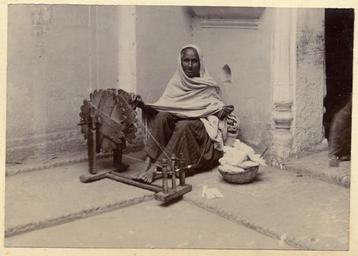 Keywords: A woman at a spinning wheel (a silver gelatin photograph), c.1890s.jpg en A woman at a spinning wheel a silver gelatin photograph c 1890s circa 1890 s http //www oldindianphotos in/2009_01_22_archive html author other versions Custom license marker 2014 10 16 PD-100 Uploaded with UploadWizard 19th-century women of India Spinning in India India in the 1890s