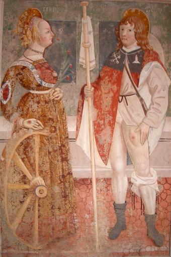 Keywords: Abbazia San Nazzaro (NO) Affresco Chiesa 1.JPG Giovanni Antonio Merli Saint Catherine of Alexandria and Saint Roch fresco 1480 in the church of St Nazzaro and Celso Abbey San Nazzaro Sesia Novara Italy Own 2007-09-29 Laurom PD-old-100 Abbazia di San Nazzaro e Celso San Nazzaro Sesia 1480 frescos Nazzaro Renaissance frescos in Italy Narzzaro 15th-century fashion Frescos of Saint Catherine of Alexandria Frescos of Saint Roch in Italy San Nazzaro Giovanni Antonio Merli 15th-century paintings of Catherine of Alexandria San Nazzaro Wooden wheels in art Men's underwear in art Braies |