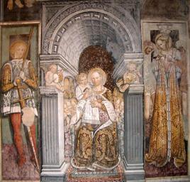 Keywords: Abbazia San Nazzaro (NO) Affresco Chiesa 2.JPG Unknown painter Madonna in trono con Bambino e angeli musicanti fra i santi Sebastiano e Agata fresco 15th century in the church of St Nazzaro and Celso Abbey San Nazzaro Sesia Novara Italy Own 2007-09-29 Laurom Abbazia di San Nazzaro e Celso San Nazzaro Sesia 15th-century frescos in Italy Renaissance frescos in Italy Narzzaro 15th-century fashion Anonymous painters Frescos of Madonna and Child in Italy Frescos of Saint Agatha of Sicily Music-making angels Paintings of Saint Sebastian in Italy San Nazzaro Maestà Hurdy-gurdy players in art Drums in art |