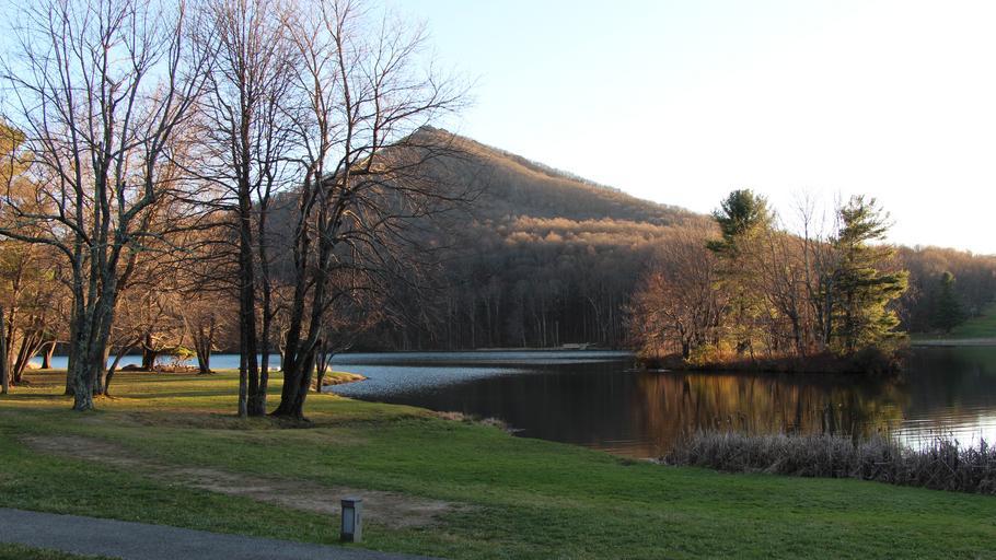 Keywords: Peaks Otter Lodge Abbott Lake Blue Ridge Parkway hotel Virginia Sharp Top Mountain outdoor hiking wallpaper distance natural park green spring north earth travel smokey appalachian view trees
