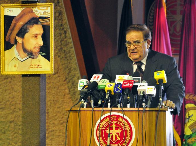 | Keywords: Abdul Rahim Wardak in Kabul April 2010.jpg Afghanistan's Minister of Defense w Abdul Rahim Wardak speaks at the two day quarterly Corps Commander Conference and Security Shura held on April 13th and 14th 2010 at the ANAAC base in Kabul Afghanistan The Purpose of the conference was to evaluate the security stability and development of Afghanistan The picture on the wall is of Ahmad Shah Massoud US Navy photo by Mass Communication Specialist 2nd Class David Quillen 100415-N-6031Q-002 http //www flickr com/photos/29456680 N06/4522481559/ 100413-N-6031Q-002A JPG 2010-04-13 09 55 Mass Communication Specialist 2nd Class David Quillen U S Navy PD-USGov-Military-Navy File Upload Bot Magnus Manske April 16 2010 de minimis the portrait of Ahmad Shah Massoud on the left Abdul Rahim Wardak Ahmad Shah Massoud |