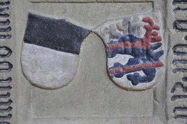 Keywords: Abenberg St Jakob Epitaph 3d.jpg Abenberg Kath Pfarrkirche St Jakob Epitaph Seckendorff von 1498 Detail Wappen Mitte Schenk von Geyern Truchseß von Pommersfelden own own photograph 2015-07 Photo Andreas Praefcke Photos by User AndreasPraefcke Wall mounted church monuments in St Jakob Abenberg Reliefs of coats of arms in Abenberg Coats of arms of Schenk von Geyern family Coats of arms of Truchseß von Pommersfelden family |