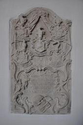 Keywords: Abenberg St Jakob Epitaph 4a.jpg Abenberg Kath Pfarrkirche St Jakob Epitaph für ein Kind des Burgpflegers Alois Freiherr von Riedheim 1752 mit Ahnenwappen own own photograph 2015-07 Photo Andreas Praefcke Photos by User AndreasPraefcke Wall mounted church monuments in St Jakob Abenberg Reliefs of coats of arms in Abenberg Coats of arms of Riedheim family 1752 works in Bavaria |