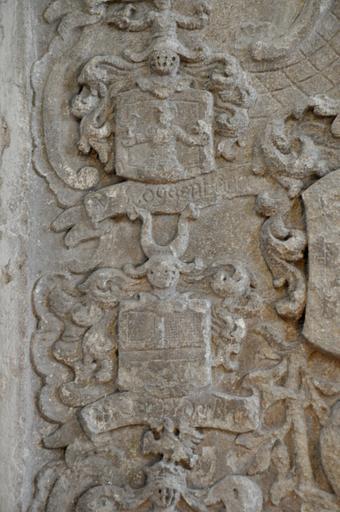Keywords: Abenberg St Jakob Epitaph 2d.jpg Abenberg Kath Pfarrkirche St Jakob Epitaph des Pflegers Freiherr von Ebinger Detail Ahnenwappen own own photograph 2015-07 Photo Andreas Praefcke Photos by User AndreasPraefcke Wall mounted church monuments in St Jakob Abenberg Reliefs of coats of arms in Abenberg Coats of arms of Roggenbach family |
