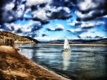 Keywords: aberdyfi england sky clouds lake sailboat beach hdr nature outside water reflections