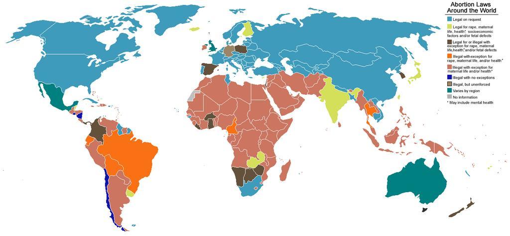 | Keywords: AbortionLawsMap.png  Image AbortionLawsMap-NoLegend png Textual legend preferred to graphic version for language and asthetic reasons Abortion Laws svg thumb 250px States have differing abortion laws in Australia thumb 250px States have differing abortion laws in Mexico ;English World map on abortion laws See AbortionLawsMap-NoLegend png for a legend-free version of this image Legend transcription 3f9bbb Legal on request d4df5a Legal for rape maternal life health mental health socioeconomic factors and/or fetal defects 64513B Illegal with exception for rape maternal life health fetal defects and/or mental health FA7014 Illegal with exception for rape maternal life health and/or mental health cc7662 Illegal with exception for maternal life health and/or mental health 3236D3 Illegal with no exceptions B3B3B3 No information Vertical stripes Germany Illegal but unenforced ;Español Mapamundi sobre la legislación sobre el aborto por países Véase AbortionLawsMap-NoLegend png para una versión sin leyenda de la misma Transcripción de la leyenda 3f9bbb Completamente legal d4df5a Legal en caso de violación riesgo para la vida de la madre problemas de salud física o mental factores socioeconómicos y/o defectos del feto 64513B Ilegal excepto en caso de violación riesgo para la vida de la madre problemas de salud física o mental y/o defectos del feto FA7014 Ilegal excepto en caso de violación riesgo para la vida de la madre y/o problemas de salud física o mental cc7662 Ilegal excepto en casos de riesgo para la vida de la madre o problemas de salud física y/o mental 3236D3 Ilegal sin excepciones B3B3B3 No hay información Lineas verticales Alemania Ilegal pero tolerado Source Created from blank world map by Vardion Island nations etc edited in from other region maps and from Image Laws on homosexuality PNG by Earl Andrew History on English Wikipedia Delete all revisions of this file cur 19 39 15 July 2006 Cassowary Talk contribs block 1350×625 28 082 bytes del rev 13 14 29 June 2006 Severa Talk contribs block 1350×625 39 230 bytes Rv South Dakota del rev 06 16 15 June 2006 Severa Talk contribs block 1350×625 31 012 bytes Information Created by Severa from blank world map by Vardion Island nations etc edited in from other region maps and Abortion maps Distributional maps of the world Demographic maps of the world Law maps of the world |
