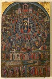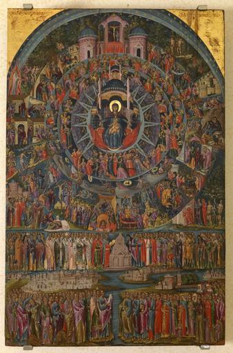 Keywords: About you rejoices by G.Klontzas (16th c.).jpg Εικονογράφηση του ύμνου «Ε ί Σοι Χαίρει» τέλη 16ου αιώνα 47x71 5εκ Γεώργιος Κλόντζας Ε ιγραφή ΕΠΙ CΟΙ ΧΑΙΡΕΙ ΚΕΧΑΡΙΤΩ Ε Η ΠΑCΑ Η KTICIC ΑΓΓΕΛΩ ΤΟ CΥCTHMA KAI ANΘΡΩΠΩ ΤΟ ΓΕ ΟC Υ ογραφή ΣΠΟΥΔΙ ΚΑΙ ΚΟΠΟΣ ΤΟΥ ΓΕΩΡΓΙΟΥ ΚΛΟΤΖΑ Στην εικόνα αυτή συνδυάζονται διάφορα θέματα και συνθέτουν μία θριαμβευτική δοξολογία ρος την Παναγία η ο οία εικονίζεται στο κέντρο της σύνθεσης μέσα σε δόξα με τον Χριστό στην αγκαλιά της και σε θρόνο α ό σεραφείμ Γύρω της σε ομόκεντρους κύκλους ου έχουν αυξανόμενο λάτος υ άρχουν οι τροχοί τα χερουβείμ οι άγγελοι τα ζώδια το Δωδεκάορτο και οίκοι του Ακαθίστου σκηνές α ό τη Γένεση και ε άνω και στη μέση εκκλησία με τον Εσταυρωμένο Στο κάτω μέρος μέσα σε μία λιμνοθάλασσα ου θυμίζει τη Βενετία εικονίζεται η Άνω Ιερουσαλήμ αλλά και άγιοι οι ο οίοι αρατάσσονται σε υκνές ιεραρχημένες ομάδες Έτσι όλο το σύμ αν και το ανθρώ ινο γένος υμνεί την Παναγία για τον ρόλο της στην Ενσάρκωση http //eib xanthi ilsp gr/gr/icons asp late 16th century Creator Georgios Klontzas Files uploaded by Shakko from various sources PD-old About you rejoices 16th-century icons of Greece Georgios Klontzas |