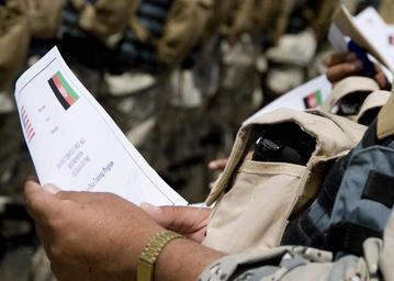 | Keywords: ABP certificate.jpg en SPIN BULDAK Afghanistan--An Afghan Border Police ABP Officer looks at his certificate of completion for the Focused Border Development Training Program during a ceremony held outside the ABP Border Center at Spin Buldak on April 2 2009 Two-hundred new Border Police Officers graduated from the seven-week training program This is the first group from the 3rd Zone to receive the training which taught fundamentals in entry-control points road blocks and other areas such as vehicle maintenance and infantry patrol ISAF photo by U S Navy Petty Officer 2nd Class Aramis X Ramirez RELEASED Flickr - http //www flickr com/photos/isafmedia/3407085110/ 090402-N-8825R-008 2009-04-02 02 11 U S Navy Petty Officer 2nd Class Aramis X Ramirez PD-USGov-Military-Navy cc-by-2 0 isafmedia http //flickr com/photos/29456680 N06/3407085110 00 16 21 November 2009 UTC cc-by-2 0 Afghan Border Police Spin Boldak |