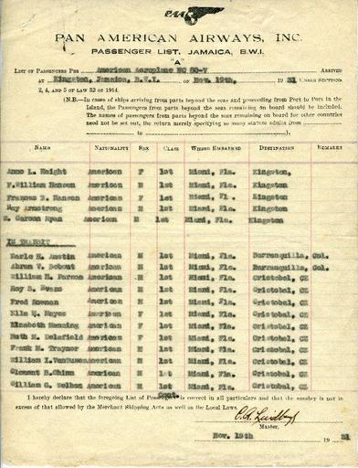 | Keywords: autograph charles lindbergh charleslindbergh pan american airways panamericanairways paa pan american panamerican pan am panam pan american world airways panamericanworldairways aviation aviator charles a. lindbergh charlesalindbergh lindbergh lucky lindy luckylindy nc-80v nc80v sikorsky s-40 sikorskys40 s-40 s40 american clipper americanclipper passenger list passengerlist manifest passenger manifest passengermanifest text document American aviator, author, inventor, explorer, and social activist. Famed for his Orteig Prize-winning solo non-stop flight on May 20–21, 1927, from Roosevelt Field located in Garden City on New York's Long Island to Le Bourget Field in Paris, France, a distance of nearly 3,600 statute miles,[2] in the single-seat, single-engine monoplane Spirit of St. Louis. American aviator, author, inventor, explorer, and social activist. Famed for his Orteig Prize-winning solo non-stop flight on May 20–21, 1927, from Roosevelt Field located in Garden City on New York's Long Island to Le Bourget Field in Paris, France, a distance of nearly 3,600 statute miles,[2] in the single-seat, single-engine monoplane Spirit of St. Louis. |