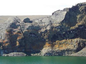 | Keywords: Acantilado en la Laguna Azul (Argentina).jpg en Cliff on the eastern wall of the crater of the Laguna Azul Argentina White spots produced by the guano of birds that nest there Yellow-orange color due to the lichen growing on basaltic rocks es Acantilado en la pared oriental del cráter de la Laguna Azul Argentina Manchas blancas producidas por el guano de las aves que nidifican allà Coloración amarillo-anaranjada debida a los lÃquenes que crecen en las rocas basálticas fr Falaise sur le mur oriental du cratère de la Laguna Azul Argentine Des taches blanches produites par le guano d'oiseaux qui y nichent Couleur jaune-orange en raison de la lichens qui poussent sur ‹ ‹les rochers basaltiques it Falesia sulla parete orientale del cratere della Laguna Azul Argentina Macchie bianche prodotte dal guano di uccelli che vi nidificano Colore giallo-arancio a causa del lichene che cresce su rocce basaltiche gl Cantil na parede leste do cráter da Laguna Azul Arxentina Manchas brancas producidas polo guano de aves que alà nidifican Cor amarela-laranxa debido ao lique que medra en rochas basálticas pt PrecipÃcio na parede leste da crater da Laguna Azul Argentina Manchas brancas produzidas pelo guano de aves que ali nidificam Cor amarelo-laranja devido ao lÃquen que cresce em rochas basálticas own Osarsan 2012 coord 52 04 36 92 S 69 34 50 24 O Cc-zero Laguna Azul Cliffs of Argentina Volcanic landforms of Argentina |