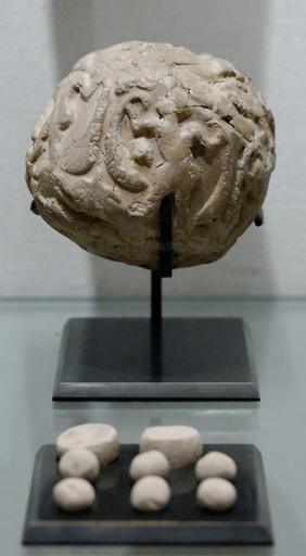 | Keywords: Accountancy clay envelope Louvre Sb1932.jpg Globular envelope with a cluster of accounting tokens Clay Uruk period From the Tell of the Acropolis in Susa Bulle-enveloppe et ses jetons de comptabilité Terre cuite période d'Uruk Provenance tell de l'Acropole à Suse Uruk clay Institution Louvre object department Near Eastern antiquities room ID 109 17360 object history credit line ProvenanceEvent excavated Roland de Mecquenem 1933-1939 Susa accession number Sb 1932 own photo date 2009 User Jastrow/cc-by-2 5 artwork license PD-old-100 photo license Cc-by-2 5 other versions Susa Ancient accounting records Uruk Period Clay archaeological objects Near Eastern Antiquities in the Louvre - Room 7 Proto-Elamite art |