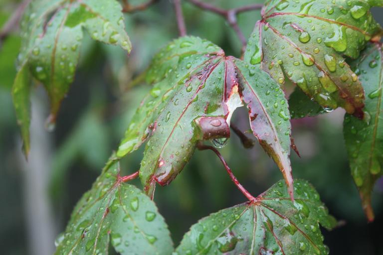Keywords: acer tree leaves green autumn fall dew rain macro