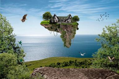 Keywords: achievement travel works futuristic gravity island up in the air matte painting mar landscape