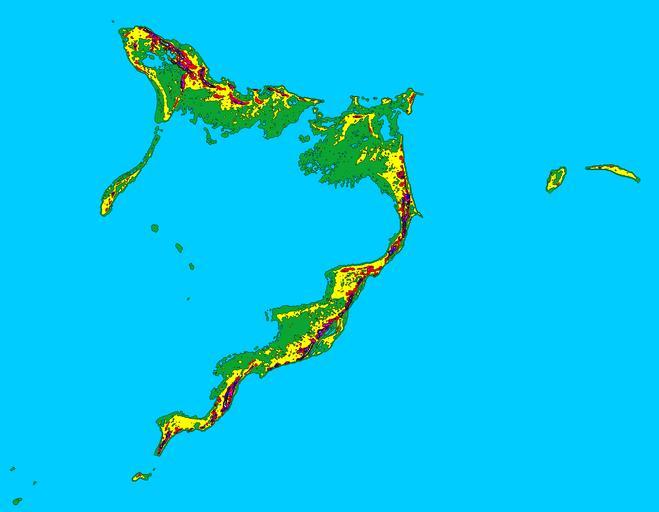 | Keywords: Acklins and Crooked 15ft 4p572 shaded.png Acklins Island Crooked Island and Long Cay in the Bahamas shaded at 15 foot 4 572 meter contour intervals <br><br> MAP KEY<br> Light Blue 0 ft 0 0 m <br> Green 0-15 ft 0 0-4 6 m <br> Yellow 15-30 ft 4 6-9 1 m <br> Red 30-45 ft 9 1-13 7 m <br> Violet 45-60 ft 13 7-18 3 m <br> Blue 60-75 ft 18 3-22 9 m <br> White 75-90 ft 22 9-27 4 m <br> Light Green 90+ ft 27 4+ m <br><br> Map created with SRTM3 digital elevation data http //dds cr usgs gov/srtm/version2_1/SRTM3/ Resolution is ~90 meters Own Lithium6ion 2012-02-22 Maps of the Bahamas |