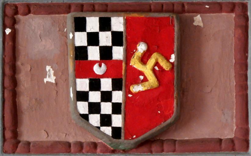 | Keywords: AclandImpalingTremayne 1615 HawkridgeBarton Chittlehampton Devon.PNG en 1615 plaster overmantel in the Inner Room next to the Great Hall in Hawkridge Barton Chittlehampton Devon showing the arms of Acland Chequy argent and sable a fesse gules impaling Tremayne Gules three dexter arms conjoined at the shoulders and flexed in triangle or the fists clenched argent representing the 1615 marriage of Baldwin II Acland 1593-1659 and Elizabeth Tremayne It consists of a strapwork cartouche with small heads probably of Cain and Abel to each side flanked by foliage and figures of Adam and Eve with the serpent above Listed building text own photo Lobsterthermidor <span class signature-talk ></span> 17 25 6 May 2015 UTC photo 2014 Hawkridge Chittlehampton Overmantels Acland arms Tremayne arms |