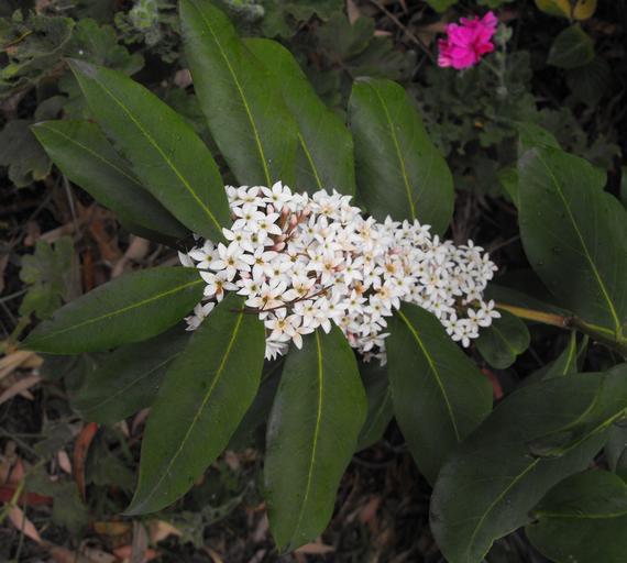 Keywords: Acokanthera oblongifolia 2.jpg Acokanthera oblongifolia Blomme van 'n Duinegifboom in die Quail Botaniese Tuine in Encinitas Kalifornië Dit is natuurlik verspreid van die Oos-Kaapse tot KwaZulu-Natalse kus en Flowers of a Dune Poison-bush at the Quail Botanical Gardens in Encinitas California USA It naturally occurs from the Eastern Cape to KwaZulu-Natal coastline South Africa The leaves have indistinct lateral veins and are usually oblanceolate in shape The fruit are >20mm <20mm in the similar A oppositifolia Own Stickpen 2009-04-14 released to public domain Acokanthera oblongifolia |