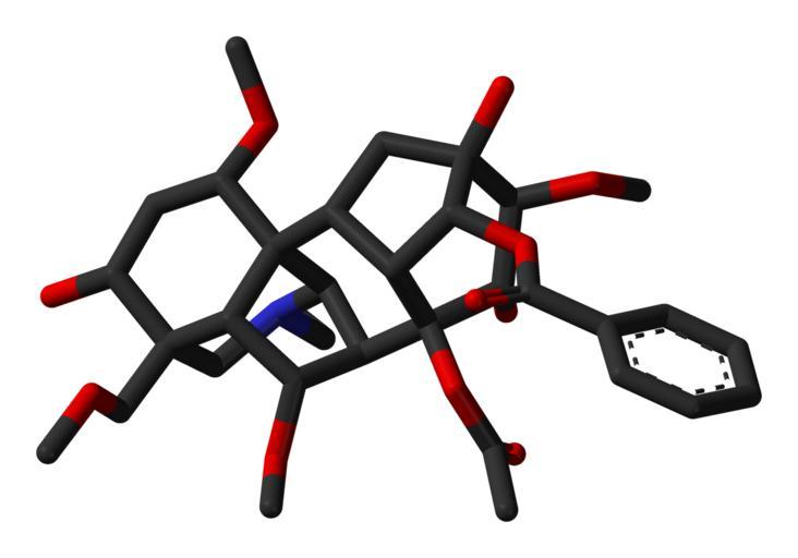 Keywords: Aconitine-xtal-3D-sticks-skeletal.png Stick model of the aconitine molecule as found in the crystalline state Single crystal X-ray diffraction data from cite journal Structure and conformation of aconitine P W Codding Acta Cryst 1982 September B38 9 2519-2522 10 1107/S056774088200925X Image generated in http //accelrys com/products/discovery-studio/visualization/discovery-studio-visualizer html Accelrys DS Visualizer Own 2008-05-18 Ben Mills Benjah-bmm27 Images by Ben Mills 3D-sticks models Aconitine |