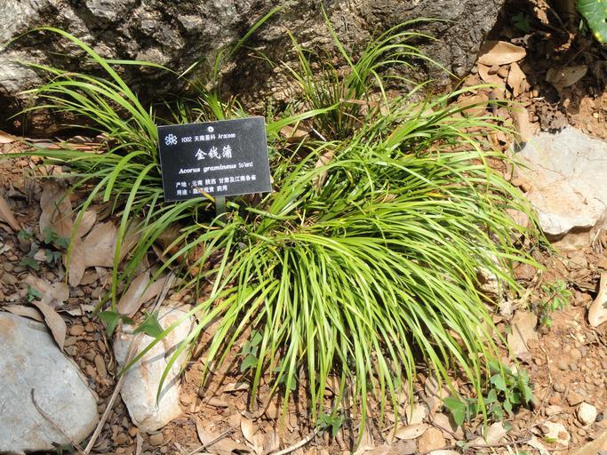 | Keywords: Acorus gramineus - Kunming Botanical Garden - DSC02990.JPG  Plant specimen in the Kunming Botanical Garden Kunming Yunnan China I took this photograph 2011-08-11 00 48 32 Daderot Public domain Rock garden specimens in the Kunming Botanical Garden Acorus gramineus |